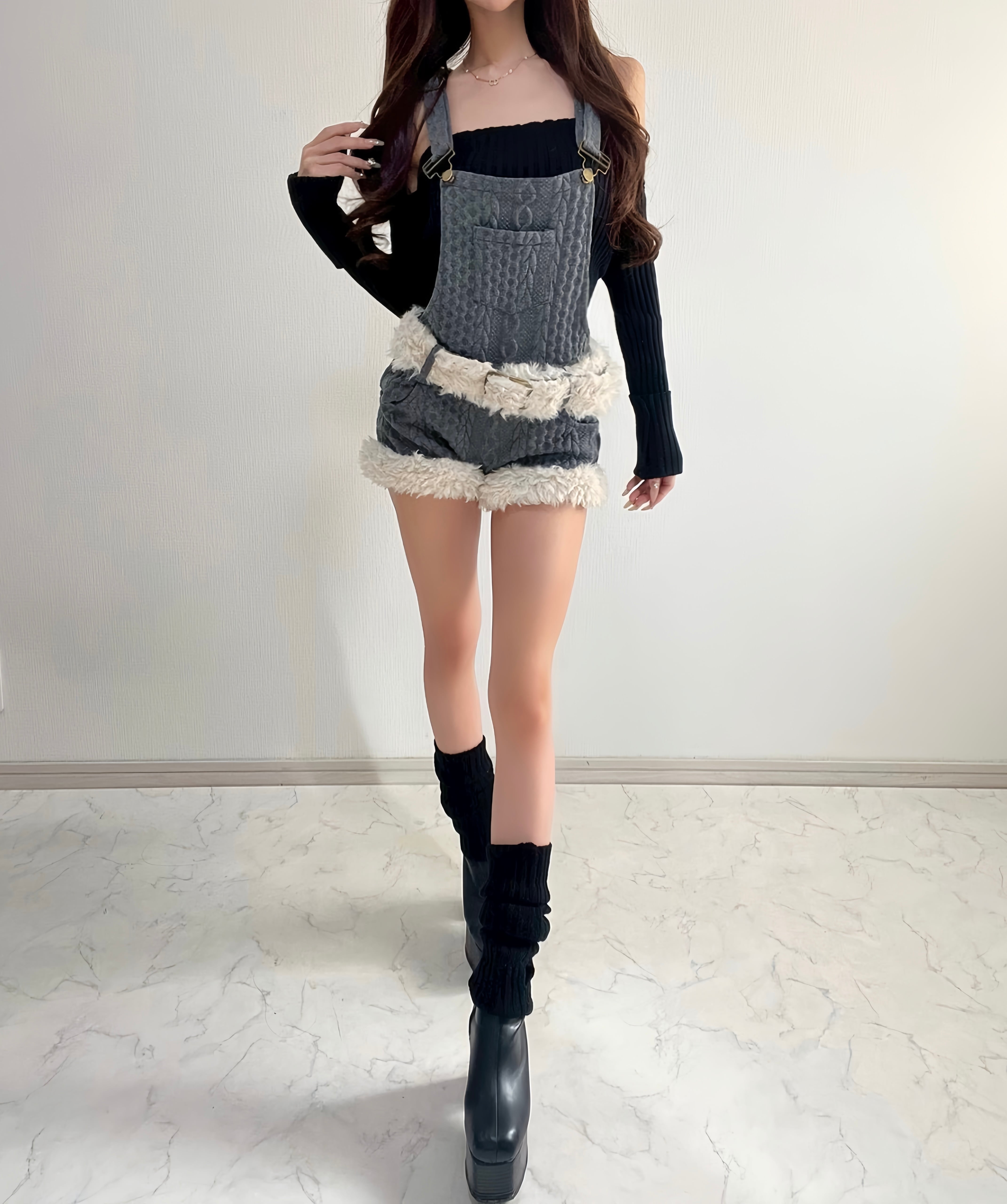 フェイクファー/サロペット(ベルト付き)