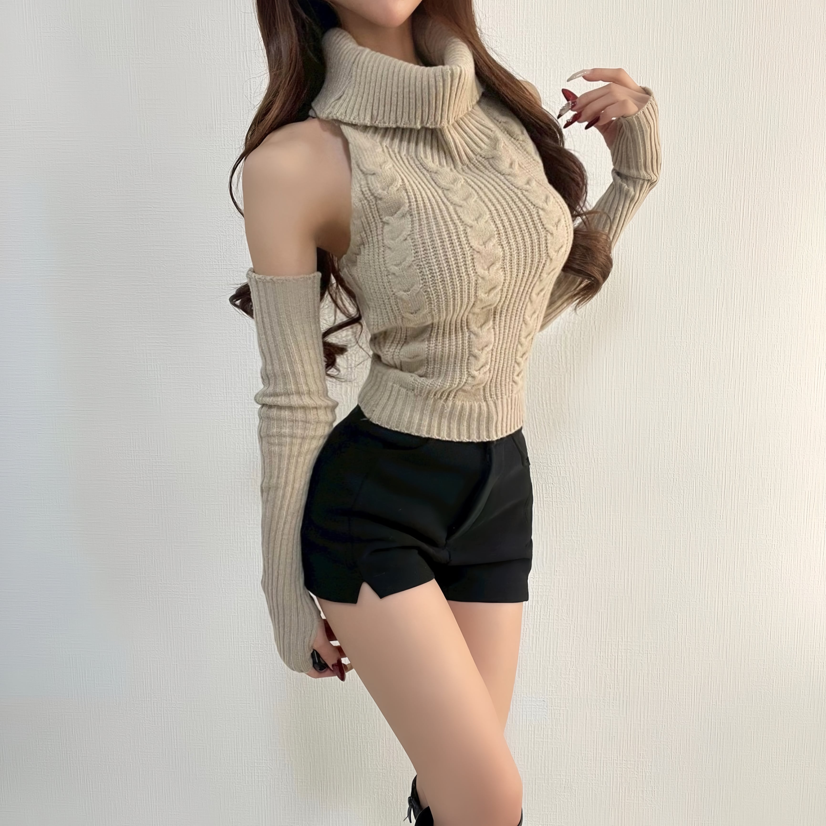 2way/アームウォーマー付きニット